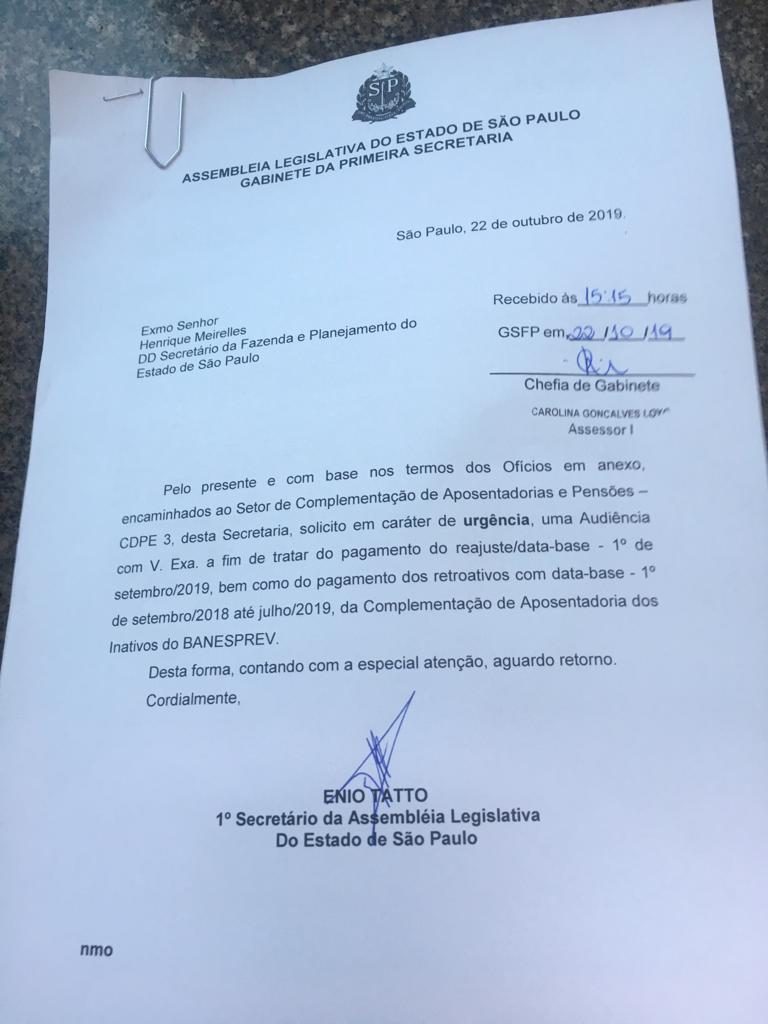 No último dia 22, terça-feira, a Afubesp esteve com o 1º Secretário da Assembleia Legislativa de São Paulo, deputado Enio Tatto (PT), em busca de soluções para o cumprimento do acordo firmado na Convenção Coletiva dos Bancários, que prevê reajuste de 4,31% (3,28% do INPC entre setembro de 2018 e 31 de agosto de 2019 acrescido de 1% de aumento real) e o pagamento dos retroativos (2018/2019). Como encaminhamento, foi solicitado, em caráter de urgência, audiência com o secretário da Fazenda do Estado, Henrique Meirelles, para reivindicar a regularização dos pagamentos.