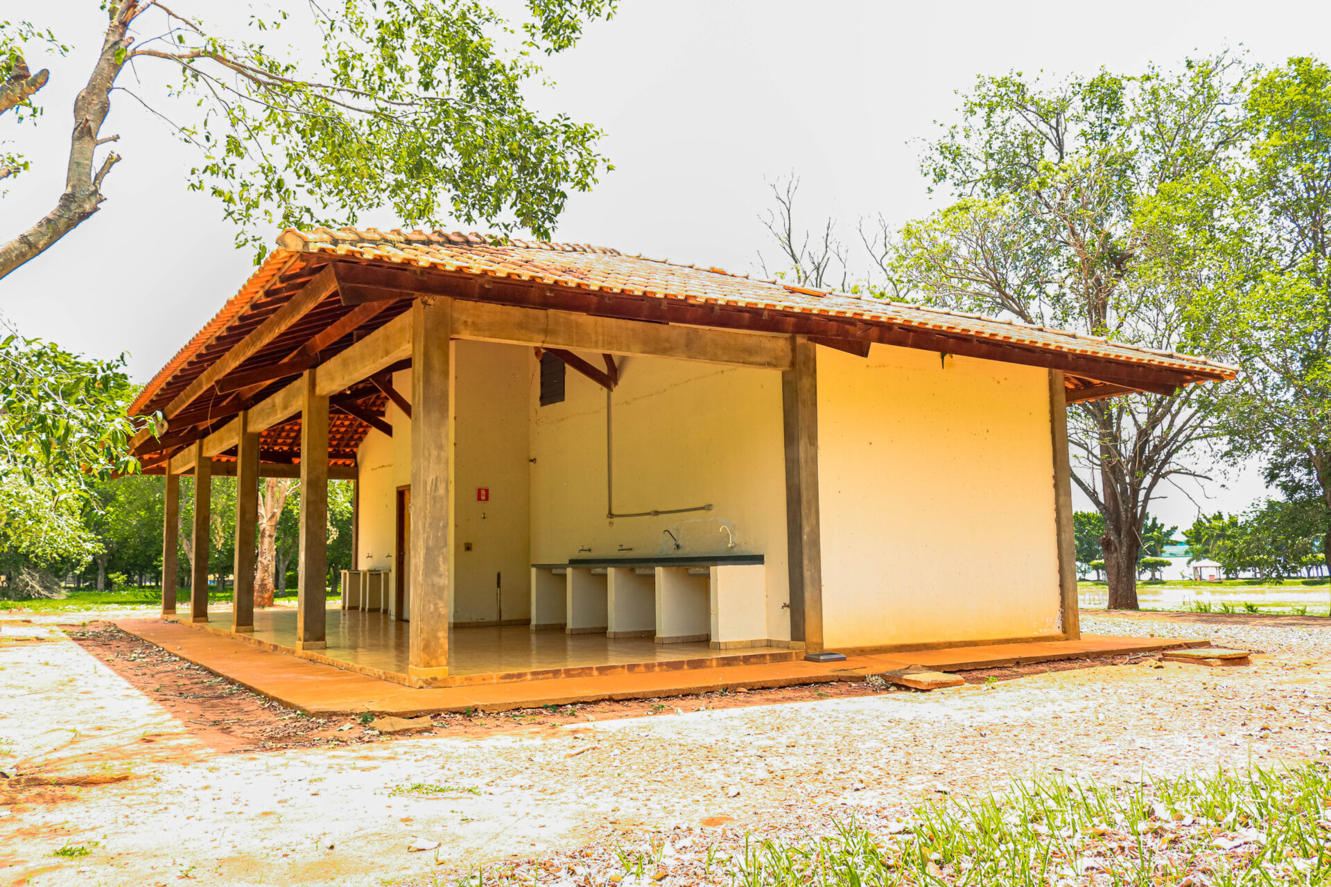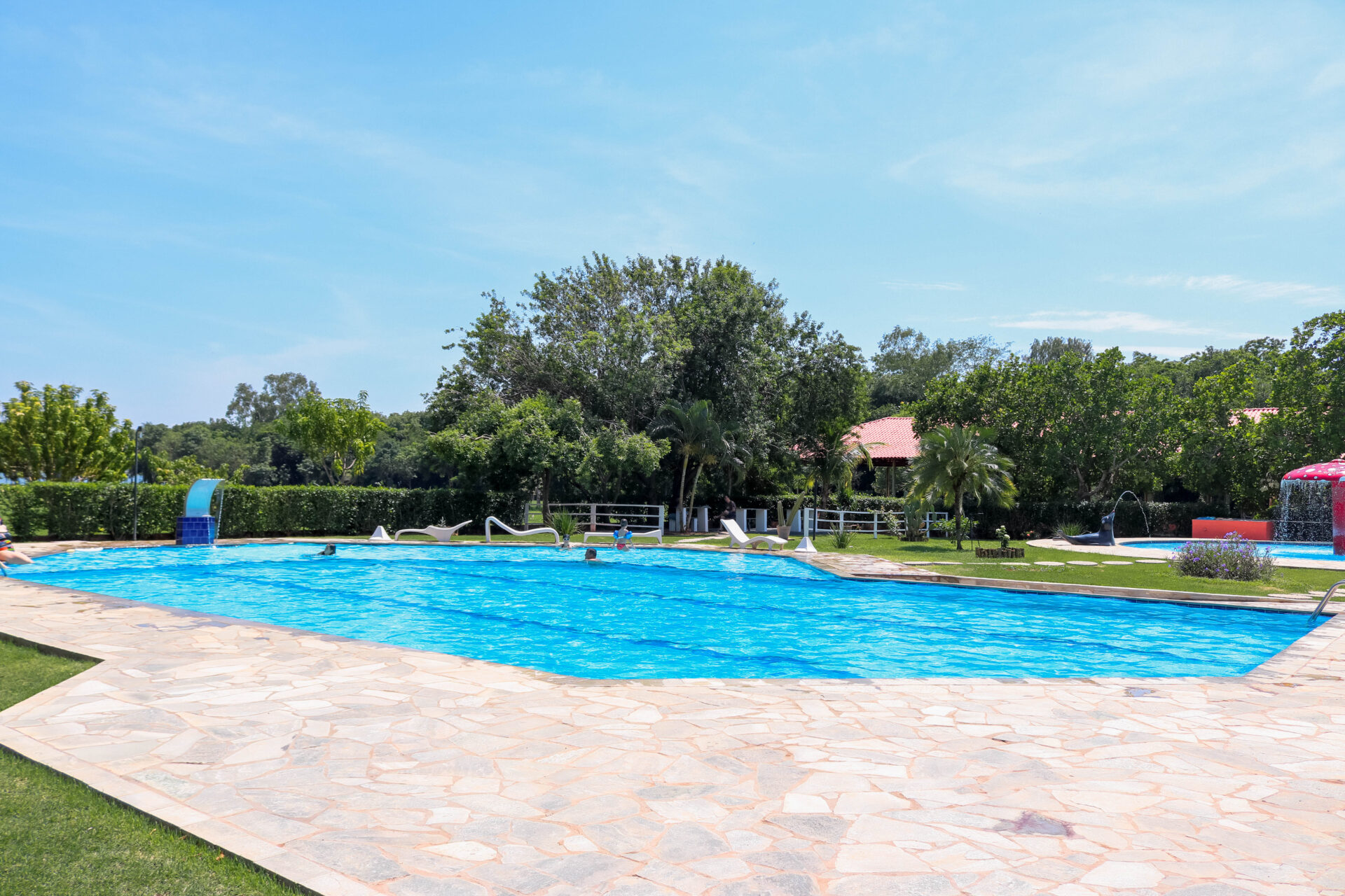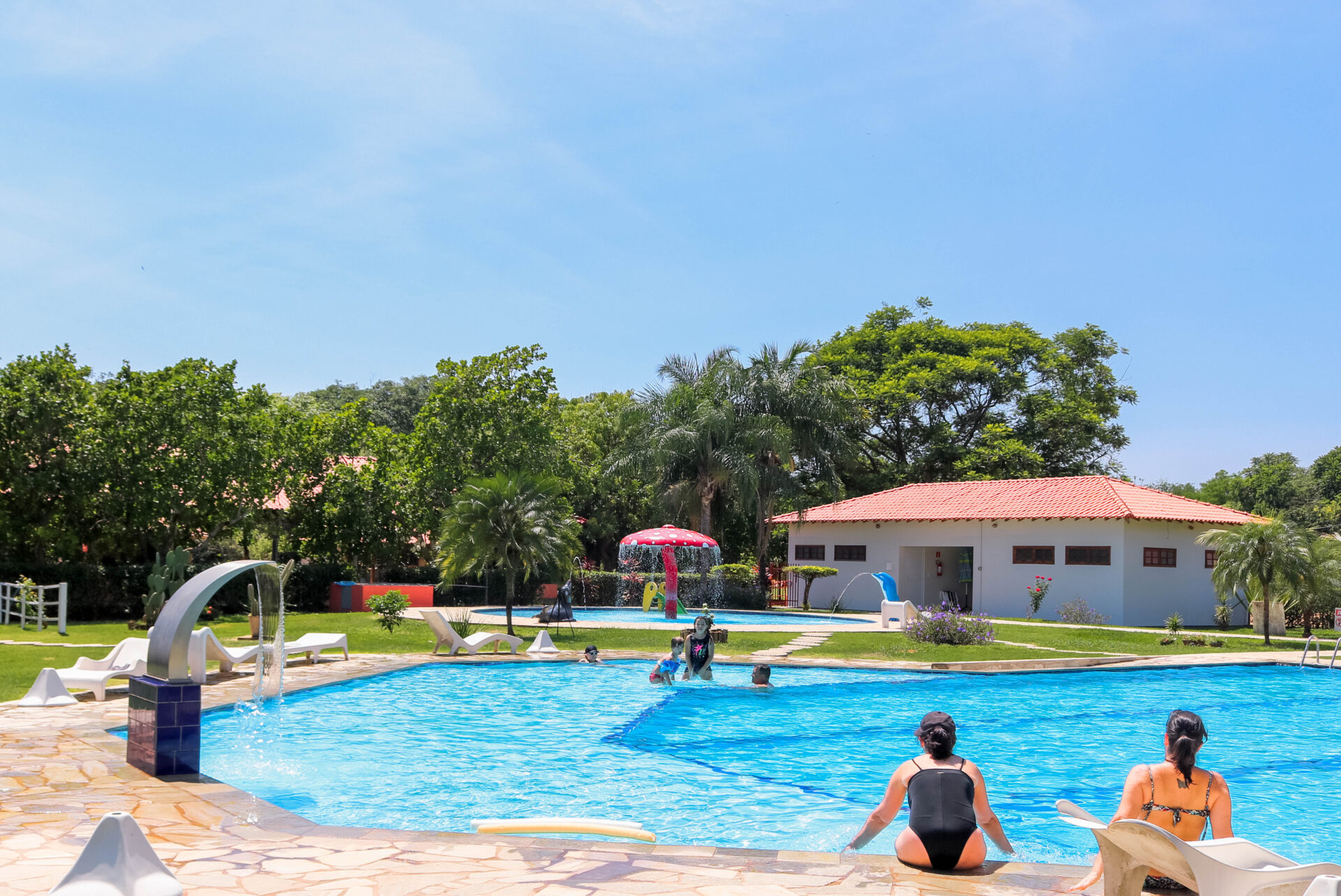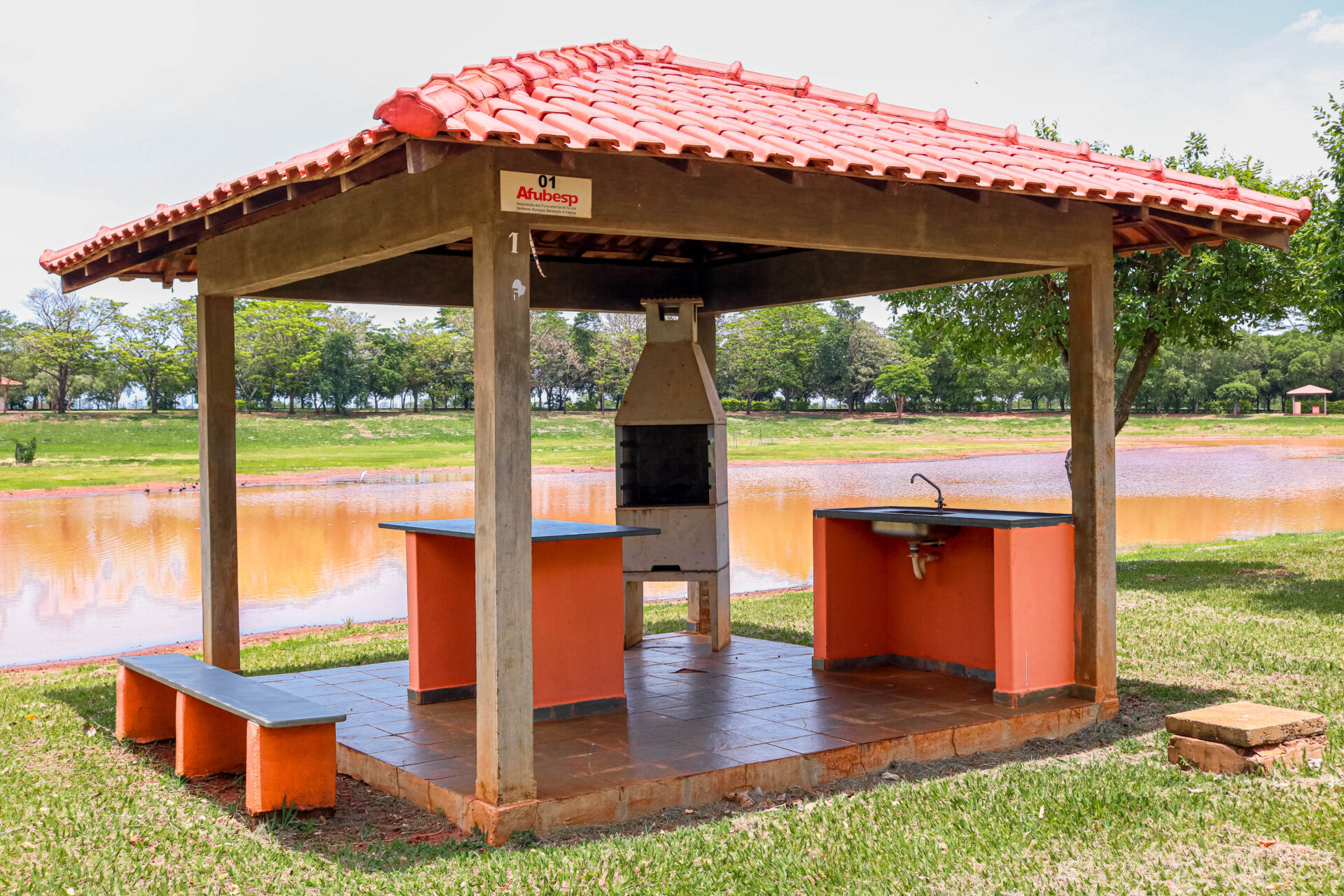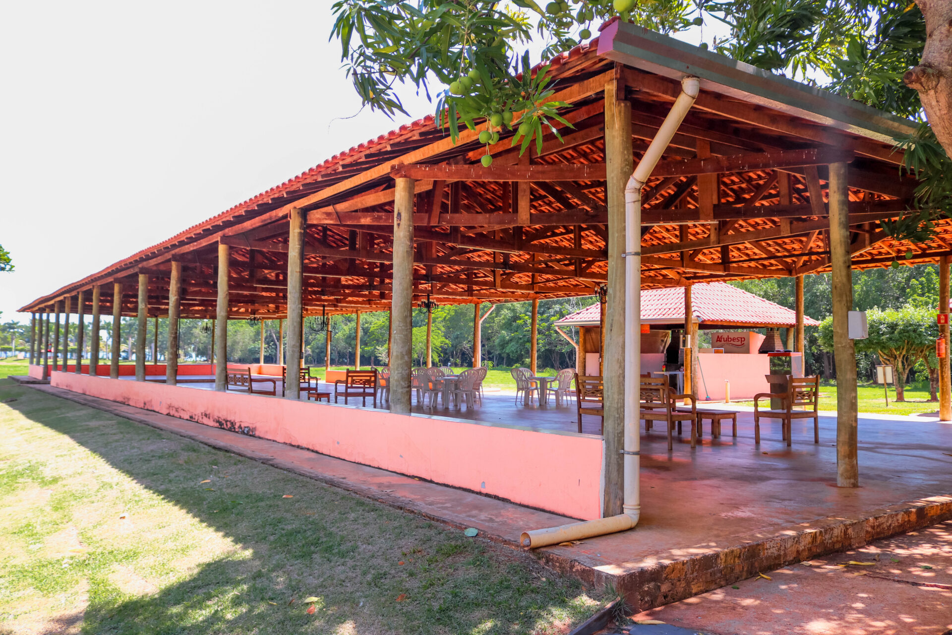 O lugar conta com 16 chalés mobiliados – um deles é adaptado para receber pessoas com deficiência -, 10 quiosques com churrasqueiras, playground e parque aquático composto por três piscinas (uma infantil, outra para a prática de biribol e a terceira destinada aos adultos).