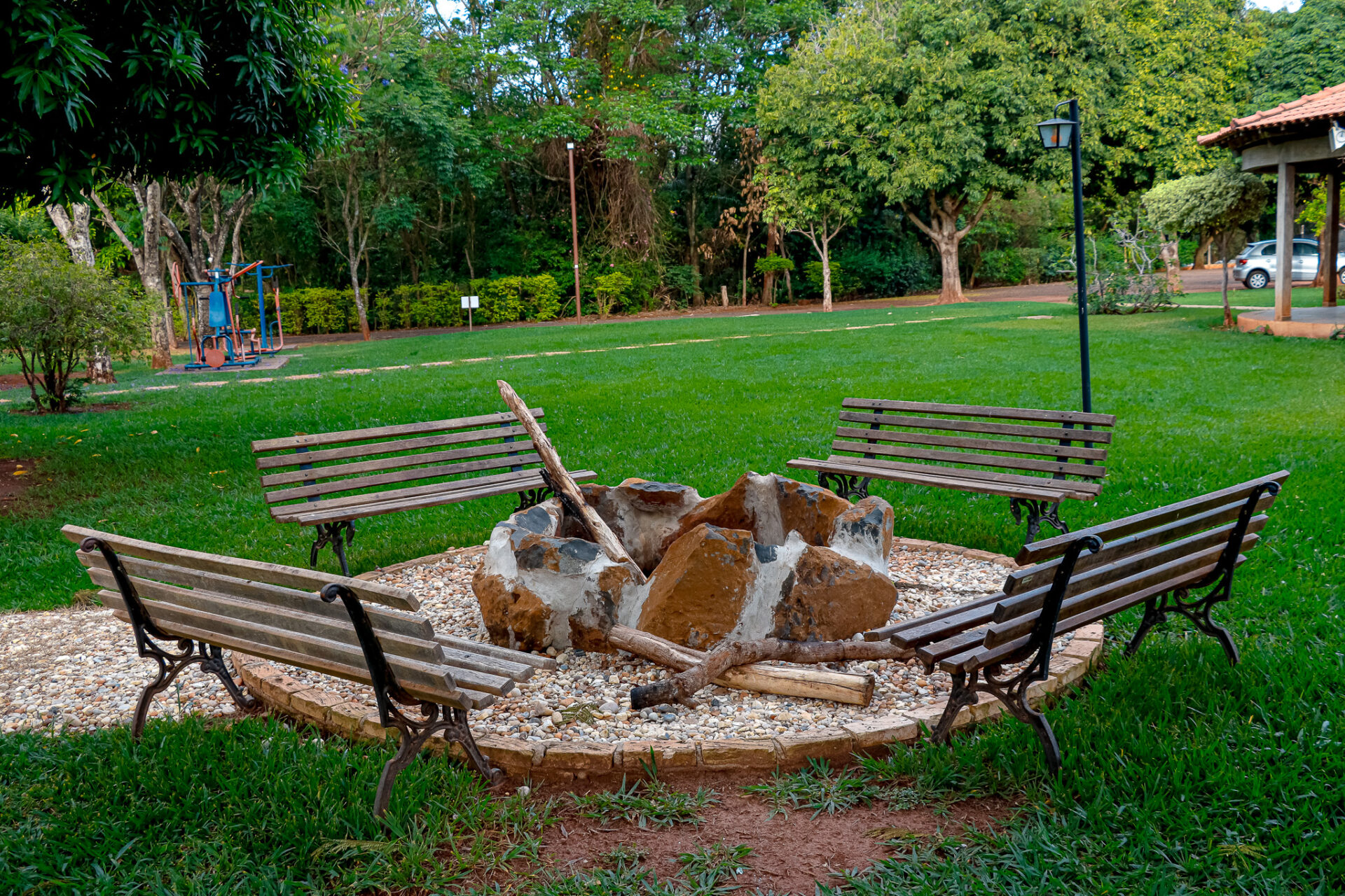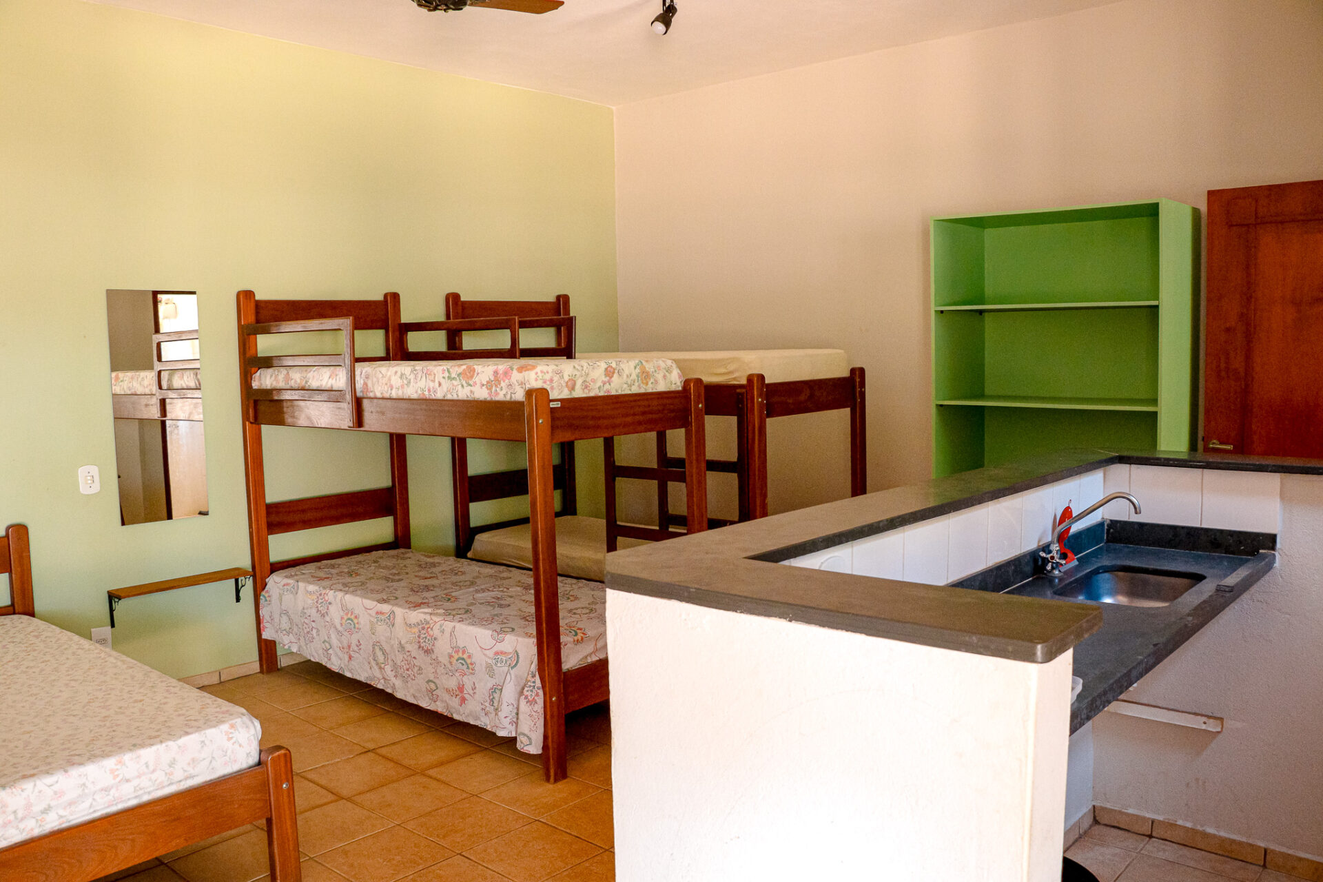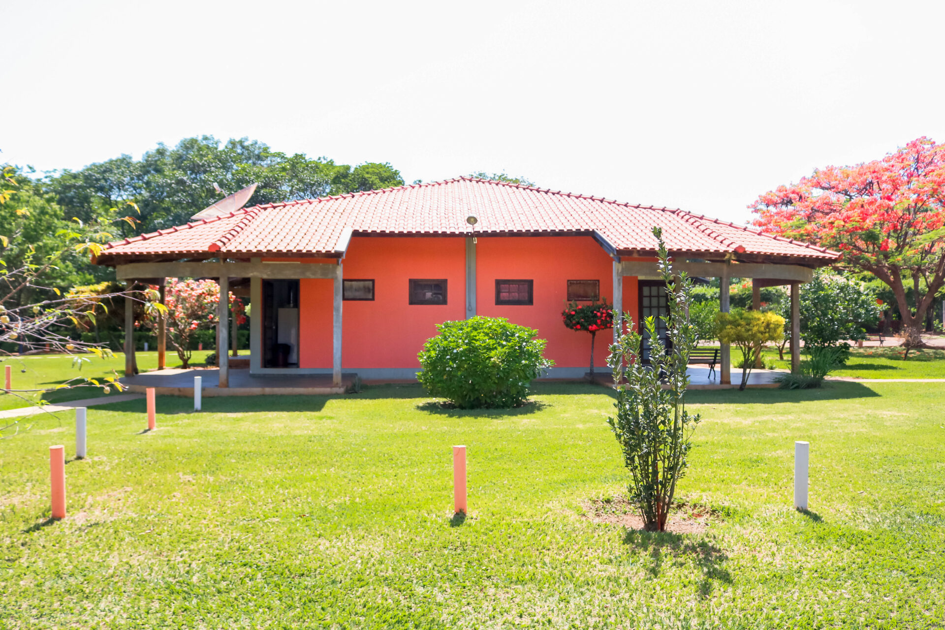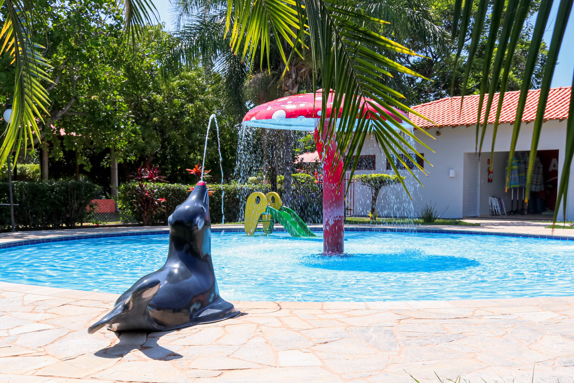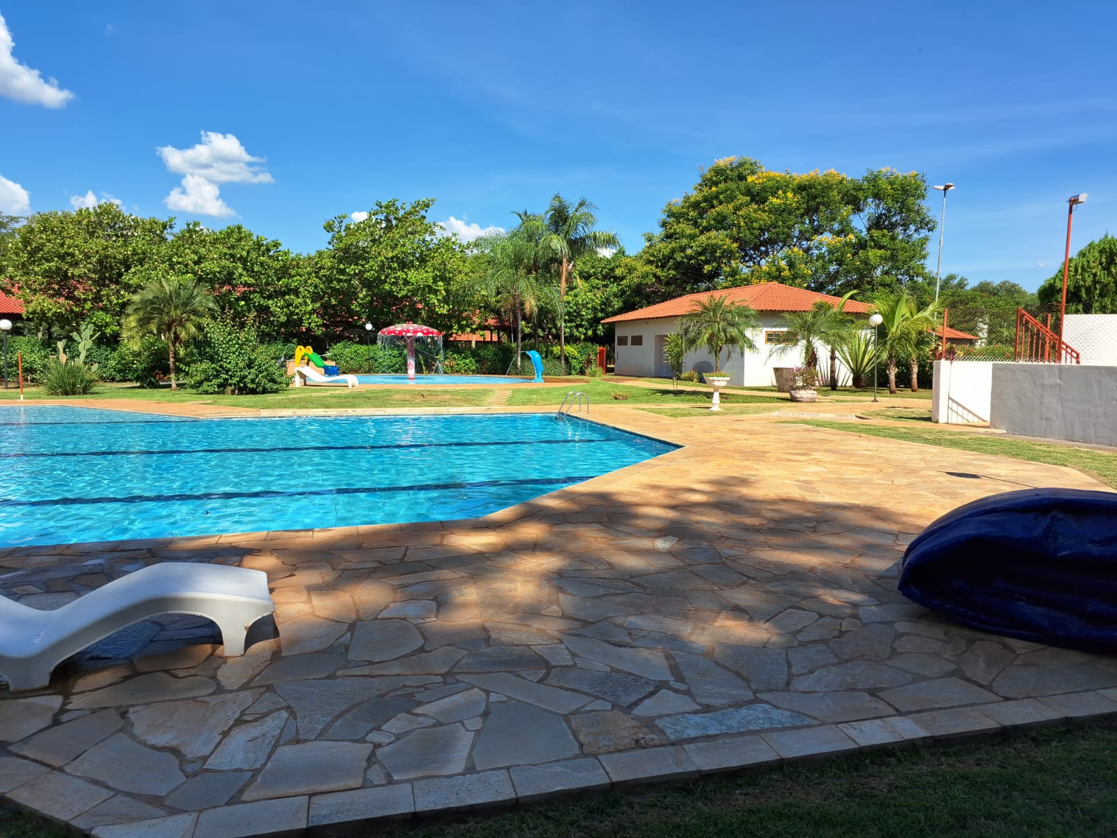 O lugar conta com 16 chalés mobiliados – um deles é adaptado para receber pessoas com deficiência -, 10 quiosques com churrasqueiras, playground e parque aquático composto por três piscinas (uma infantil, outra para a prática de biribol e a terceira destinada aos adultos).