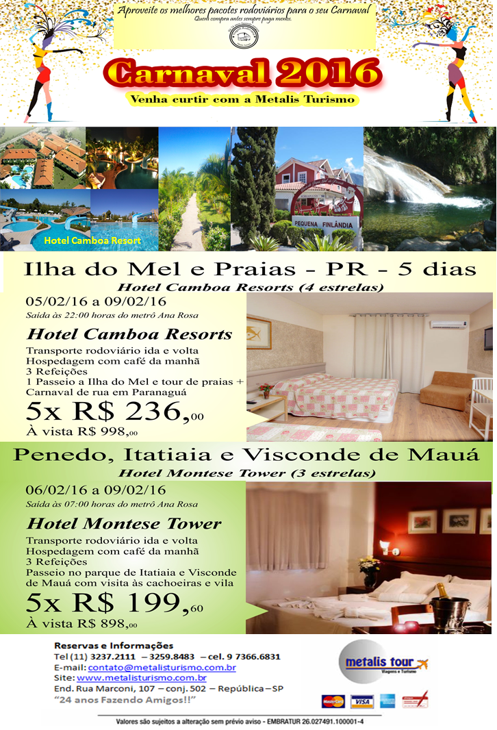 Convênio: Programe seu Carnaval com a Metalis Turismo