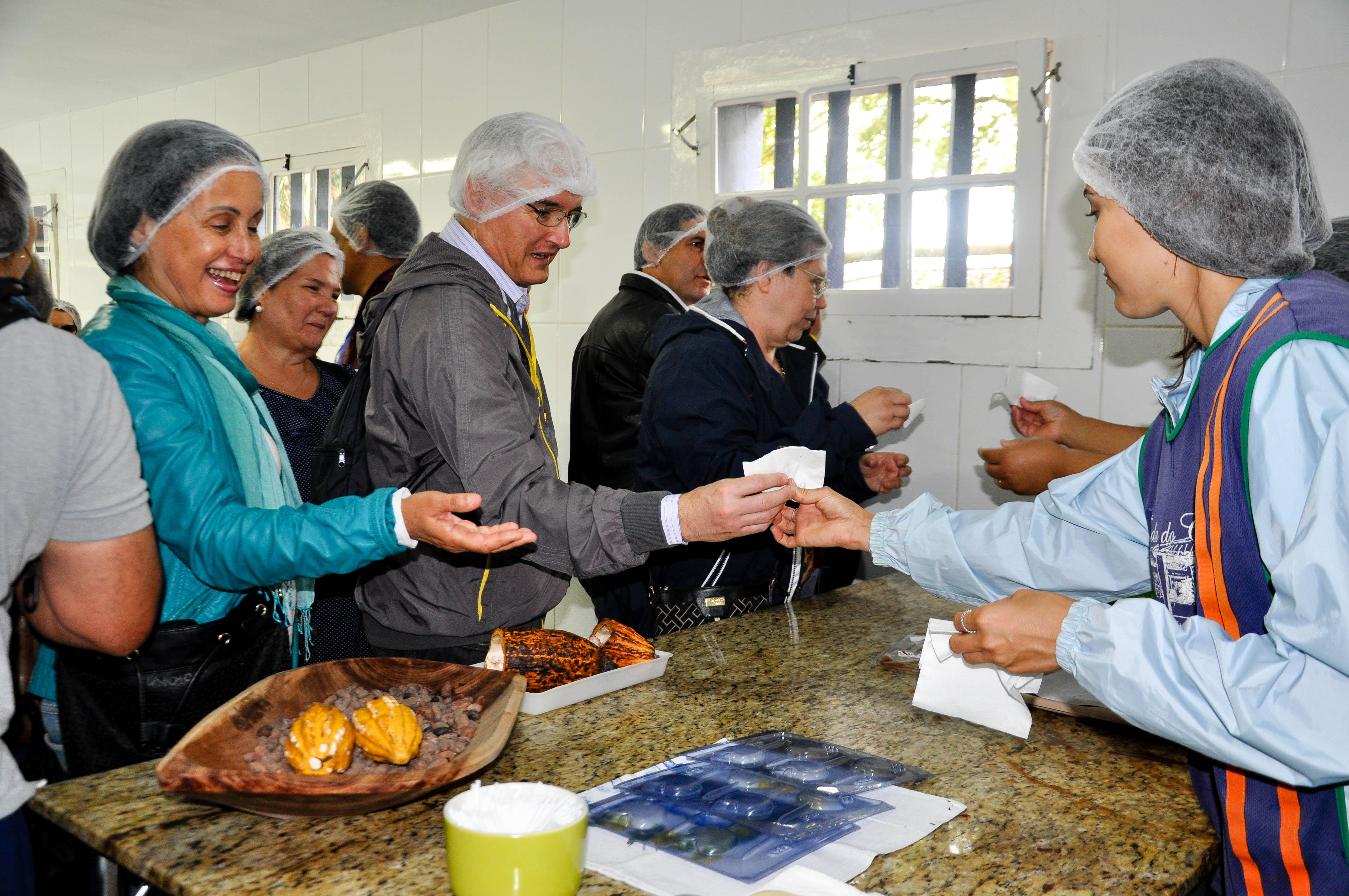 A programação começou doce: devidamente paramentados, os associados conheceram o local onde a Fazenda produz seus conhecidos chocolates. Da abertura do cacau à temperagem do chocolate para produção dos bombons, tudo bem explicado pela chocolatier e – claro – degustado pelo grupo.