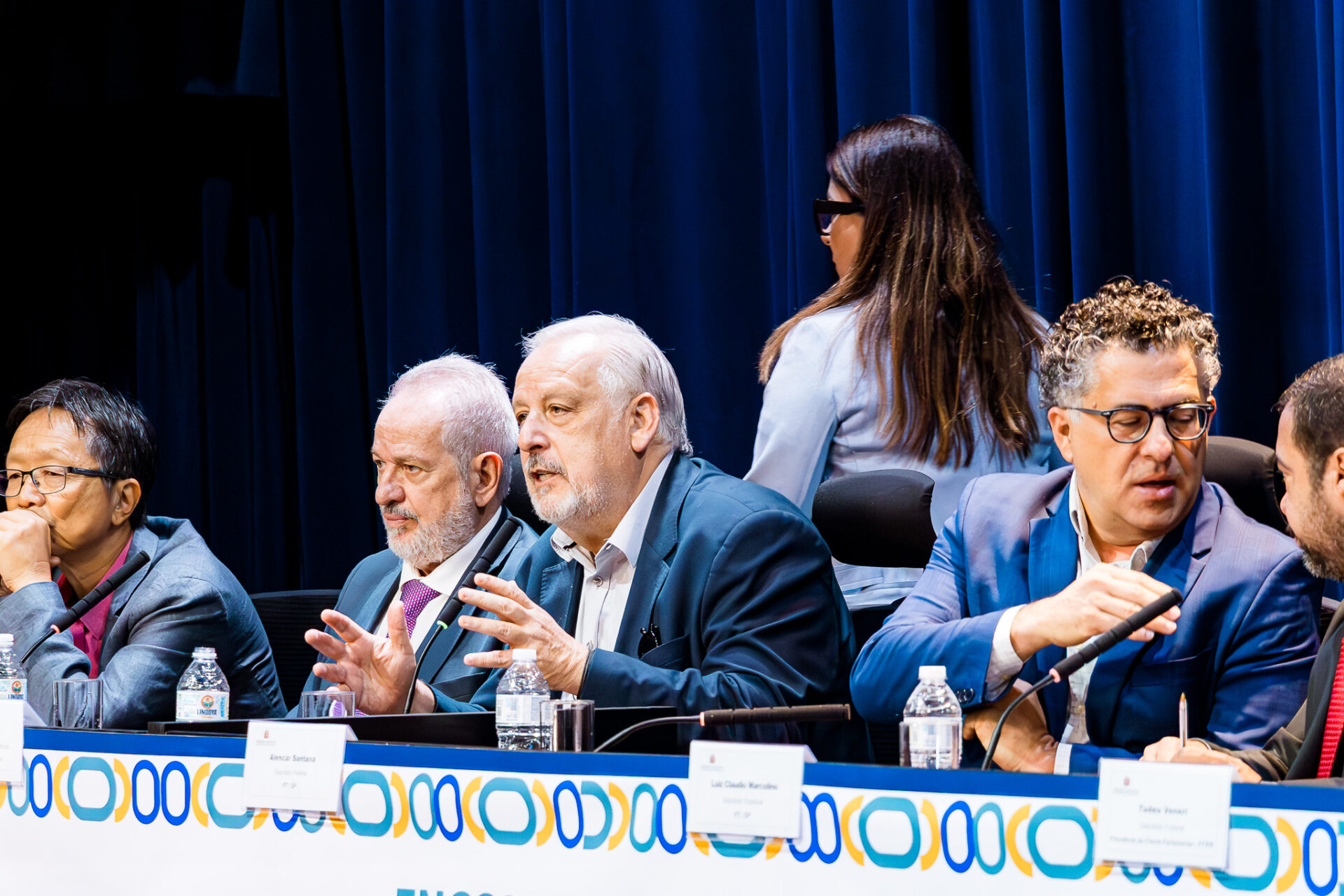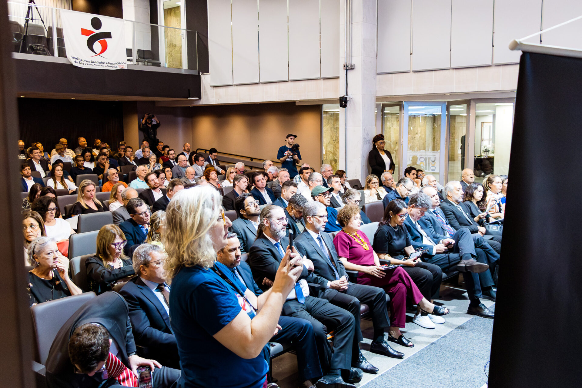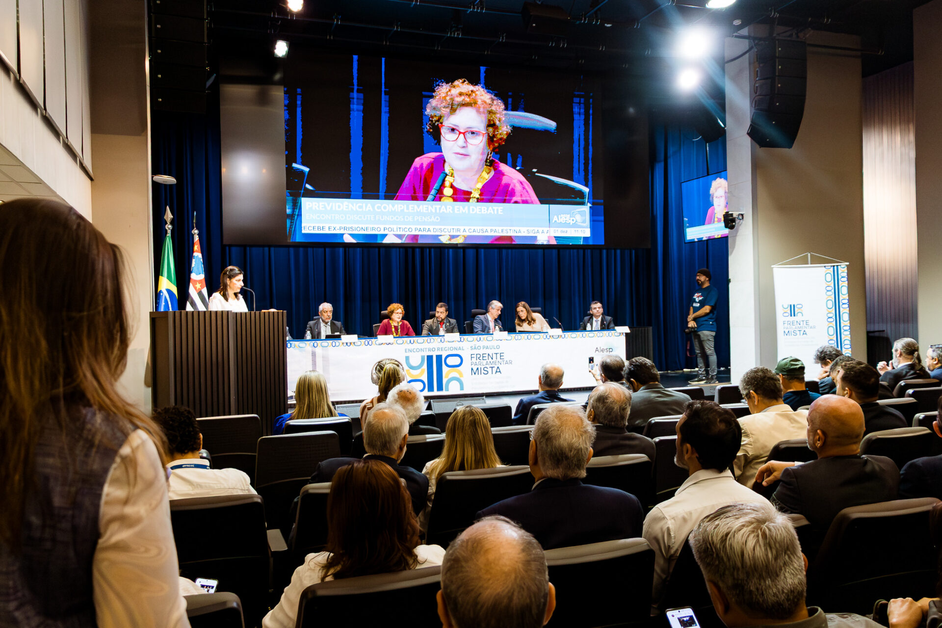 Em uma articulação que ainda carece da presença feminina, Maria Rosani, presidenta da Afubesp, compôs a segunda mesa de honra. Em sua fala, relembrou que a associação tem marcado presença em todas as audiências sobre o tema desde seu lançamento oficial – em Brasília, depois Paraná, Minas Gerais e agora em São Paulo – sempre alertando para os impactos dos ataques das patrocinadoras à previdência complementar fechada, com atenção especial ao comportamento nocivo do Santander. “E assim seguiremos”, afirmou.
