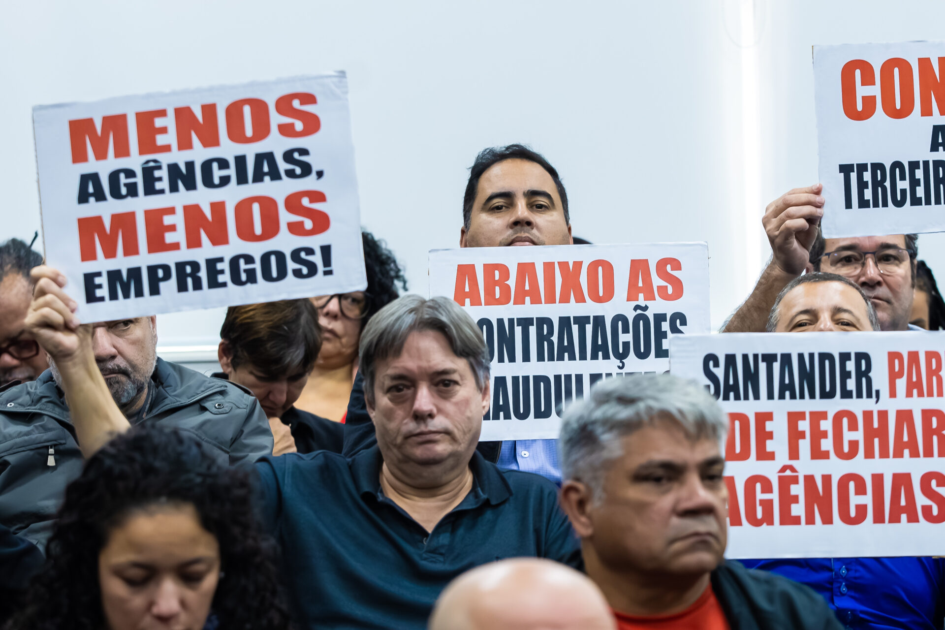 “Guardadas as proporções, o que esse banco tem feito é roubar nossas riquezas. Chegou com uma concessão pública e só pensa em reduzir despesas e aumentar o lucro que não fica no Brasil”, destacou.